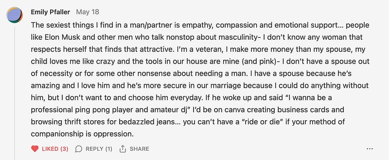 This one paradigm shift scares the right immensely. It undercuts one of their biggest recruiting tools. If men are content, are kind, are willing to learn and grow and are not interested in being constrained by a narrow and limiting conception of masculinity, we’re not such easy marks. We’re not so willing to buy the idea that we have to be domineering, harmful to women, “alphas” and all that nonsense. That makes us less susceptible to a political and cultural ideology based on oppression. That makes us less vulnerable to the lies of the right.