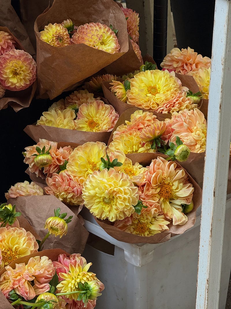 Soft pinks and buttery yellows at the flower market in NYC ✨