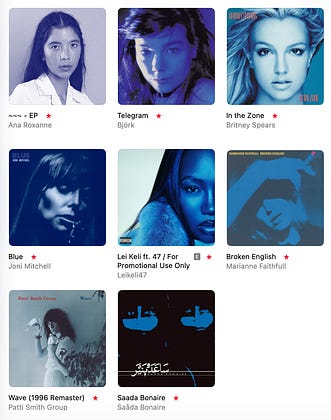This month I played some Marianne Faithfull, Saada Bonaire and Mary J. Blige, all connected by the color blue and inspired by this older piece of mine: theartofcoverart.substa…