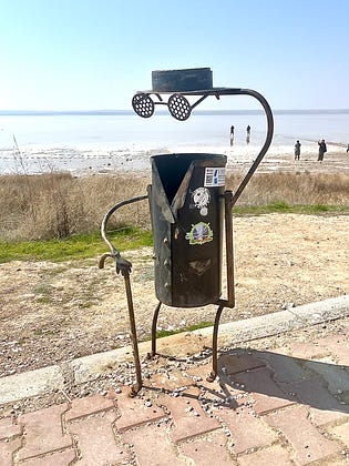 A trash can with style, placed beside the salt lake Tuz Gölü in Turkey.