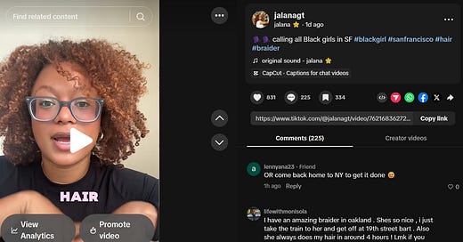 I’ve been here a month and I still haven’t found anyone to do my hair but no fear, the Black girls of San Francisco came through in my comment section to help a girl out.