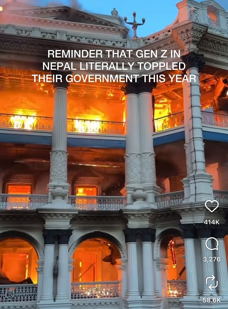 Gen Z in Nepal just 6 months ago when govt shut down social media in an attempt to shut down their organizing: