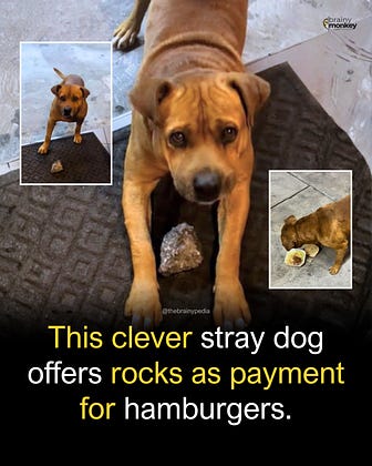A clever stray dog named Esmashito went viral for offering small rocks as “payment” for hamburgers at a burger stand owned by a man named Alonso in Nuevo León, Mexico. According to a viral video shared by Insight Stack on YouTube, Esmashito first approached Alonso’s burger stand carrying a small stone in his mouth, placing it on the counter as if to pay for food. Touched by the gesture, Alonso gave him a burger. From that day on, Esmashito returned daily, always bringing a stone, and eventually, he started bringing his stray friends, each one offering their own “gift”.