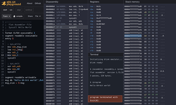 x86-64 Playground: An online assembly editor and GDB-like debugger