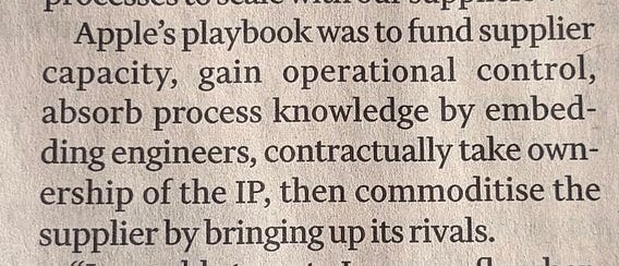 Today’s FT big read on Apple is a sobering assessment of Apple’s manufacturing approach and particularly its treatment of early suppliers.