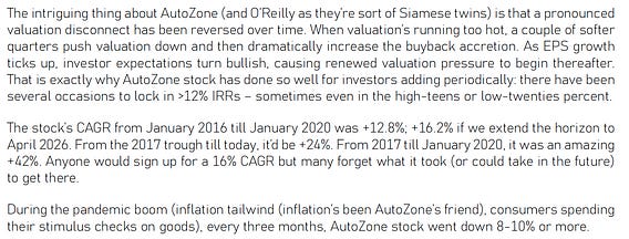 Talked about drawdowns in $AZO stock and remarkable volatility in valuation. It’s been a great yet tough buy-and-hold name for 99% of all investors…