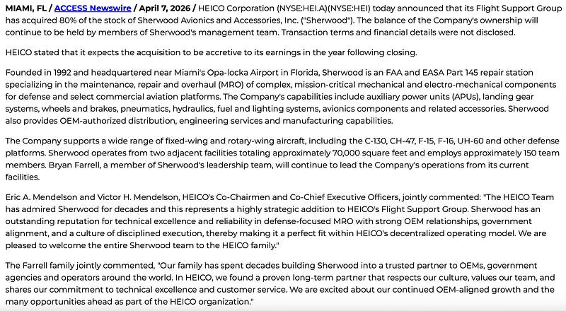 Not unexpected - HEICO with the third acq in FY26