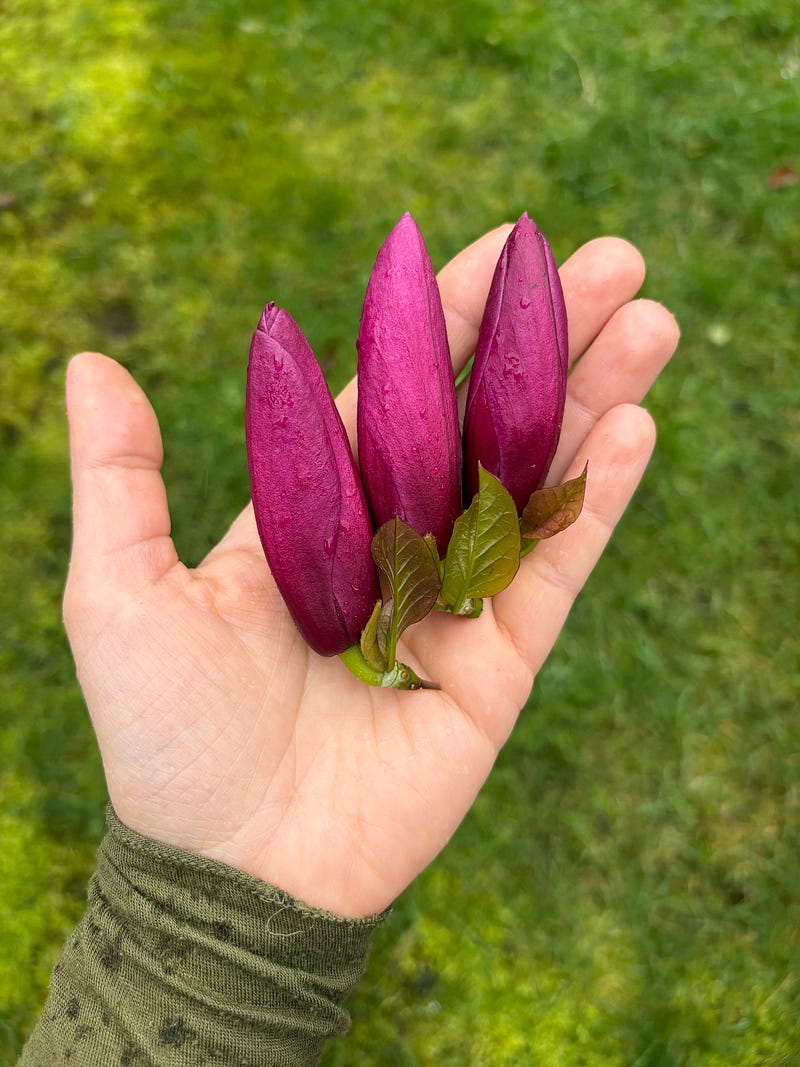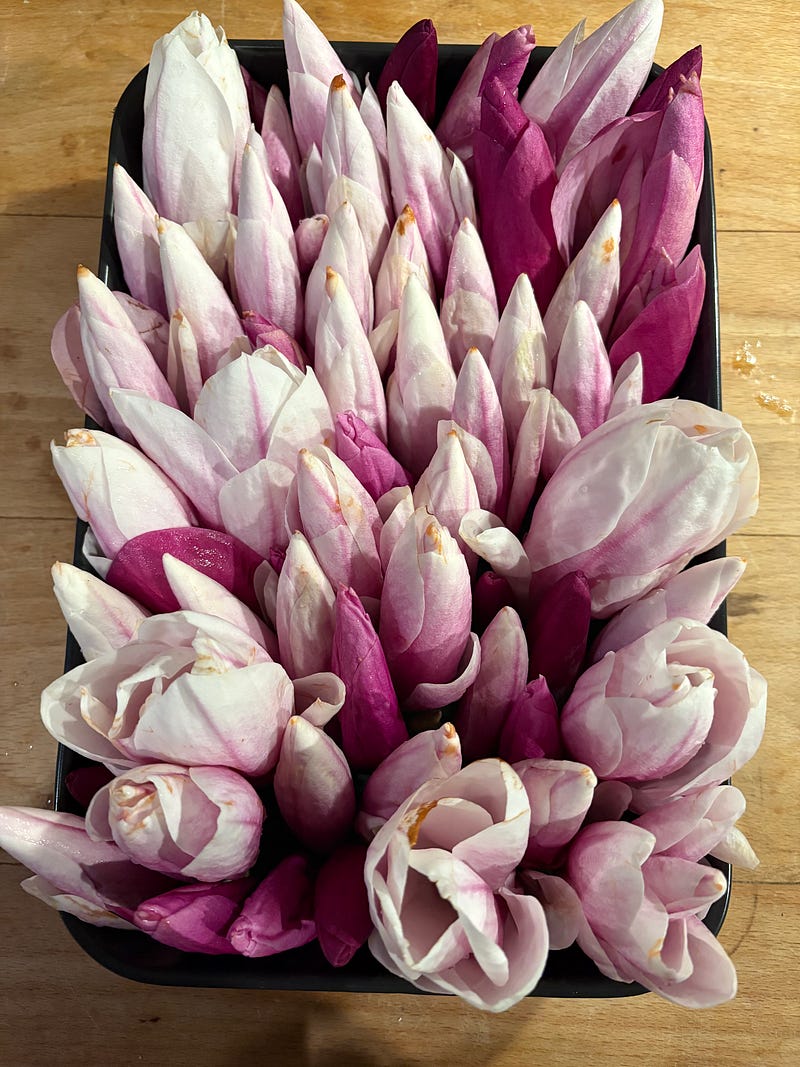 Magnolia’s are blooming. I’ve pickled the closed buds and infused a bunch of petals in a simple syrup for magnolia syrup.