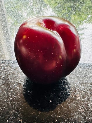 My mother loved plums, she’s gone from this world now. So I buy them and eat them for her.
