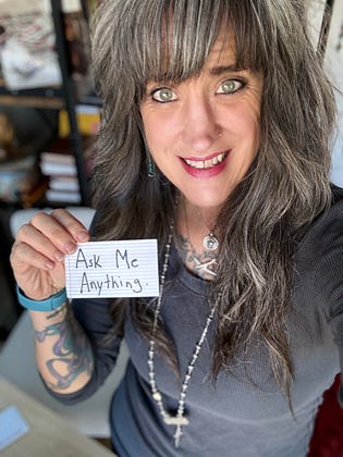 Hit me up (a progressive, heavily tattooed, recovering alcoholic, Lutheran Lady Pastor) with your questions about faith, the spirituality of the 12 steps, forgiveness, grace, Jesus, prayer, and how to try and be even just 1% less of an asshole.