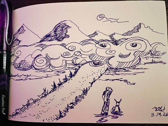Inking it out with my purple pen… my mind out on an adventure ☮️💜