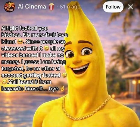 The fruit love island saga is so beautiful bc the guy running the account has gone full crash out now