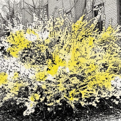 That sentence should stop you. Not because I am particularly observant, but because I am not. The forsythia does not require a trained eye. It requires only a memory, and enough years in one place to notice that the memory no longer matches the ground.