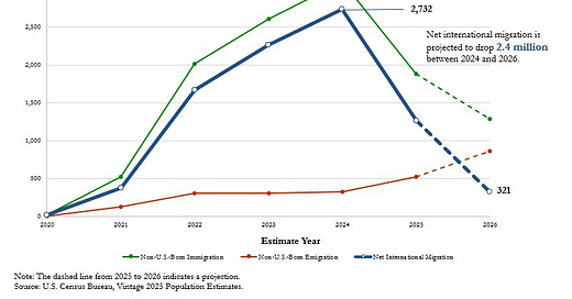 Immigration expands the base of taxpayers, which means more people to share the burden of paying taxes to pay for defense. This includes undocumented immigrants, because their employers collect payroll taxes out of their wages, with the added fiscal payoff that they will never collect benefits. And because immigrants are relatively young and healthy, they increase the amount going into government coffers while having a delayed impact on outlays. The Social Security Administration does substack.com/redirect/c… of factors affecting its projections, and consistently finds that higher immigration improves the system’s financial health, while lower immigration worsens it.