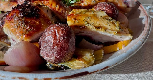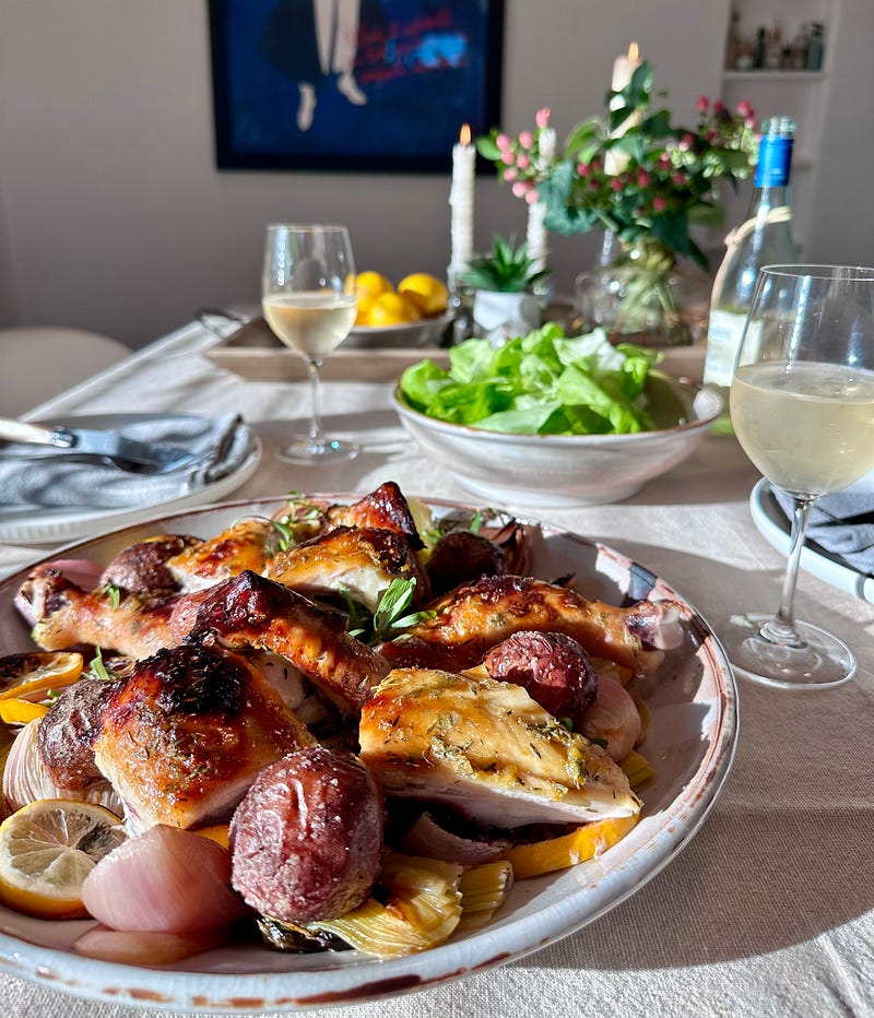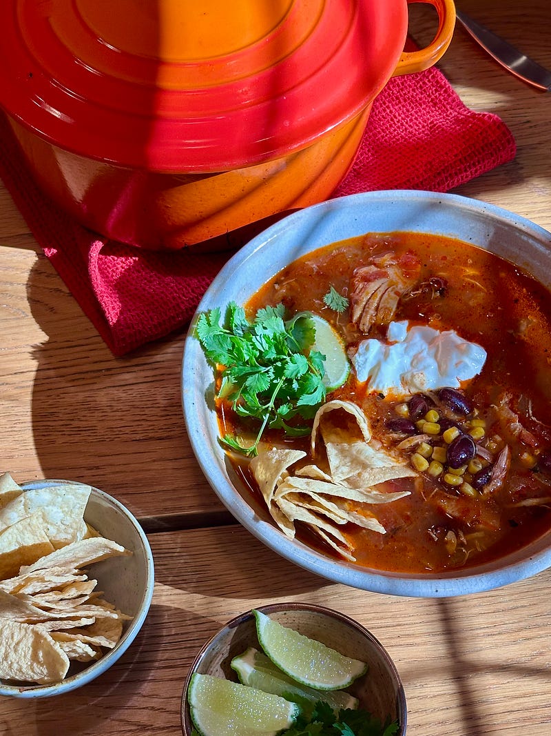 New Edible Week is up. Four dinners, one tight shopping list, and lots of overlap so nothing sad lingers in the fridge by Friday. Roast chicken → tortilla soup, a crunchy Brussels sprout salad, and a fast salmon rice bowl. Cozy, efficient, done.