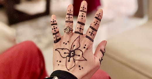 Last Friday was Eid al-Fitr, the celebration that marks the end of Ramadan, and we spent it with Yas’s family, surrounded by biryani and pakoras and cardamom-spiced desserts, henna drying on my hand, family gathered around the table.