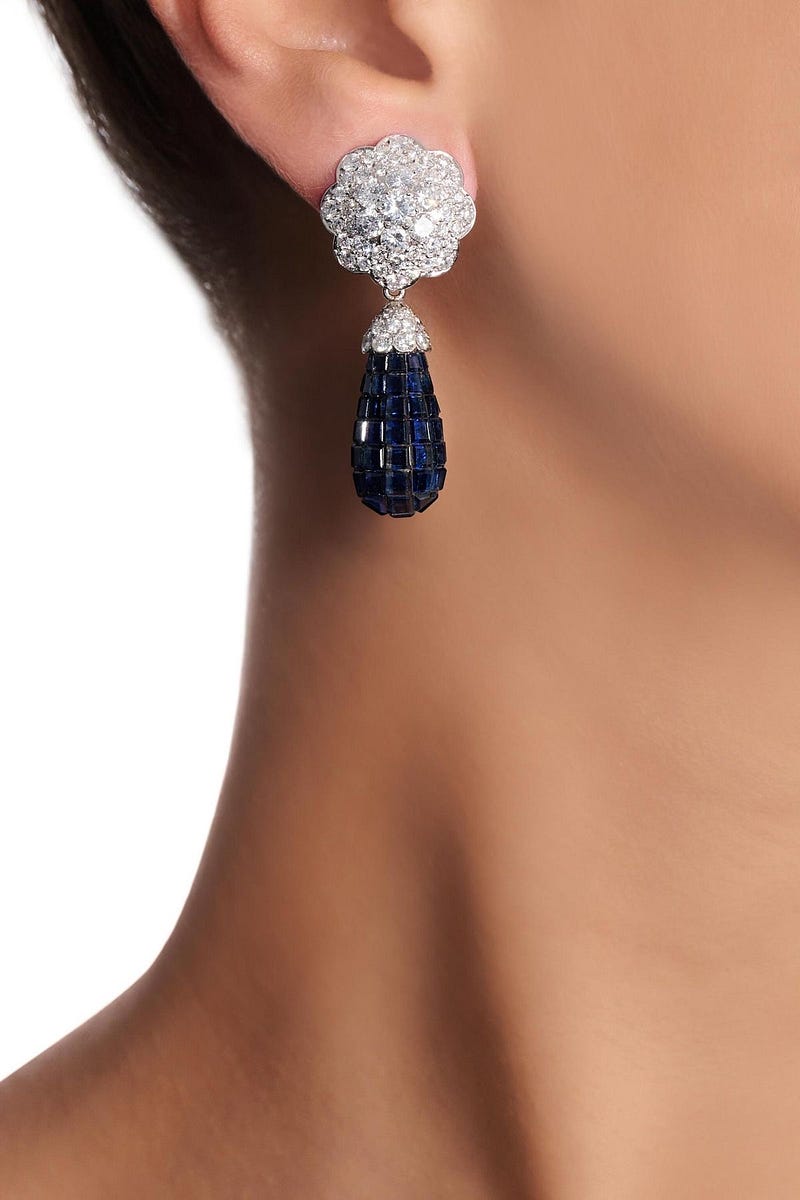 The mystery setting is a gemstone setting technique in which no prongs or metal are visible from the front. It was patented in 1933 by Van Cleef & Arpels and became one of their most recognisable signatures.