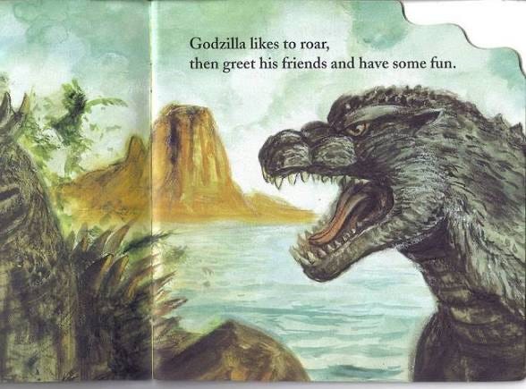 (Image from Godzilla Likes to Roar! by Kerry Milliron, illustrated by Bob Eggleton)