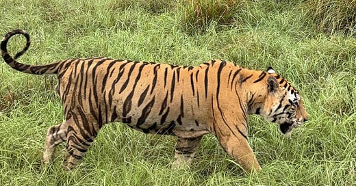 I must admit I felt a little envy reading this, because after more than a dozen visits to tiger reserves across north and central India over 30 years, Kanha in 2023 was actually my ever first tiger sighting! The only other time was an incident back in 1989 in Corbett Park when we could hear a tiger prowling somewhere nearby, those deep rumbling growls rolling through the forest, but we never actually caught a glimpse of it.