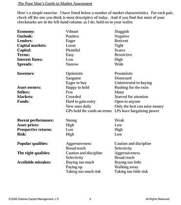The Poor Man’s Guide to Market Assessment, by Howard Marks.
