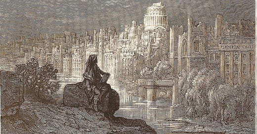 “The city, like me, was a corpse; it too would rise from its grave, but only to be a shade of its former self, a ghost of misbegotten power in unworthy hands.”