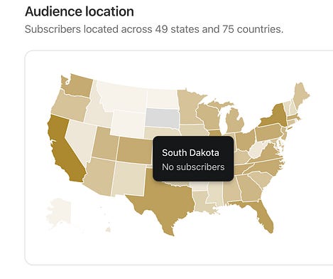 First person to subscribe from South Dakota gets my first-born child. Or like, a gift card to a coffee shop or something. Either one, your choice.