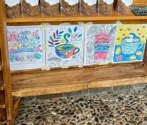 I created a kid-height “coloring corner” where kids can help themselves to paper and crayons while their parents order.