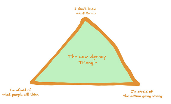 When I inspect my low agency behaviours, I find this triangle deep down in the basement of my brain.