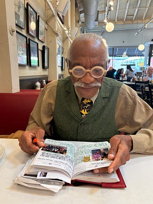 diner lunch with my pal Raymond (age 80). bay area’s best dressed. could be in a Loewe campaign. his personal style is his extraordinary life, which he has documented via daily journaling for over 50 years. we met to debrief the met gala Black dandyism theme and walk through his tips on the how and why of journaling.