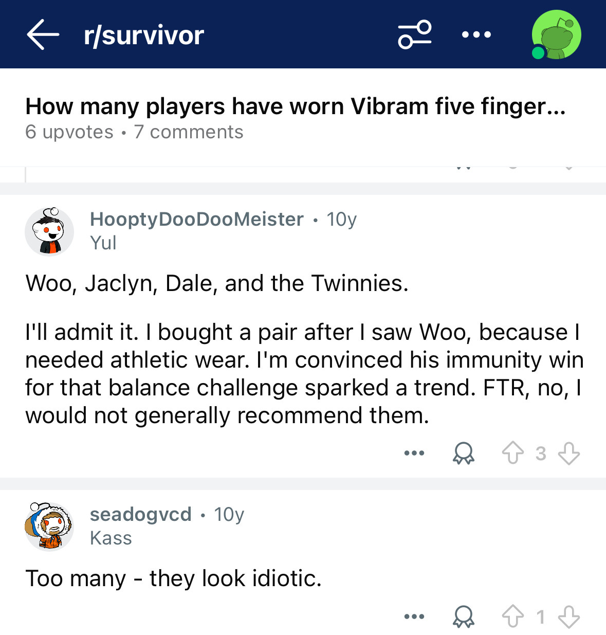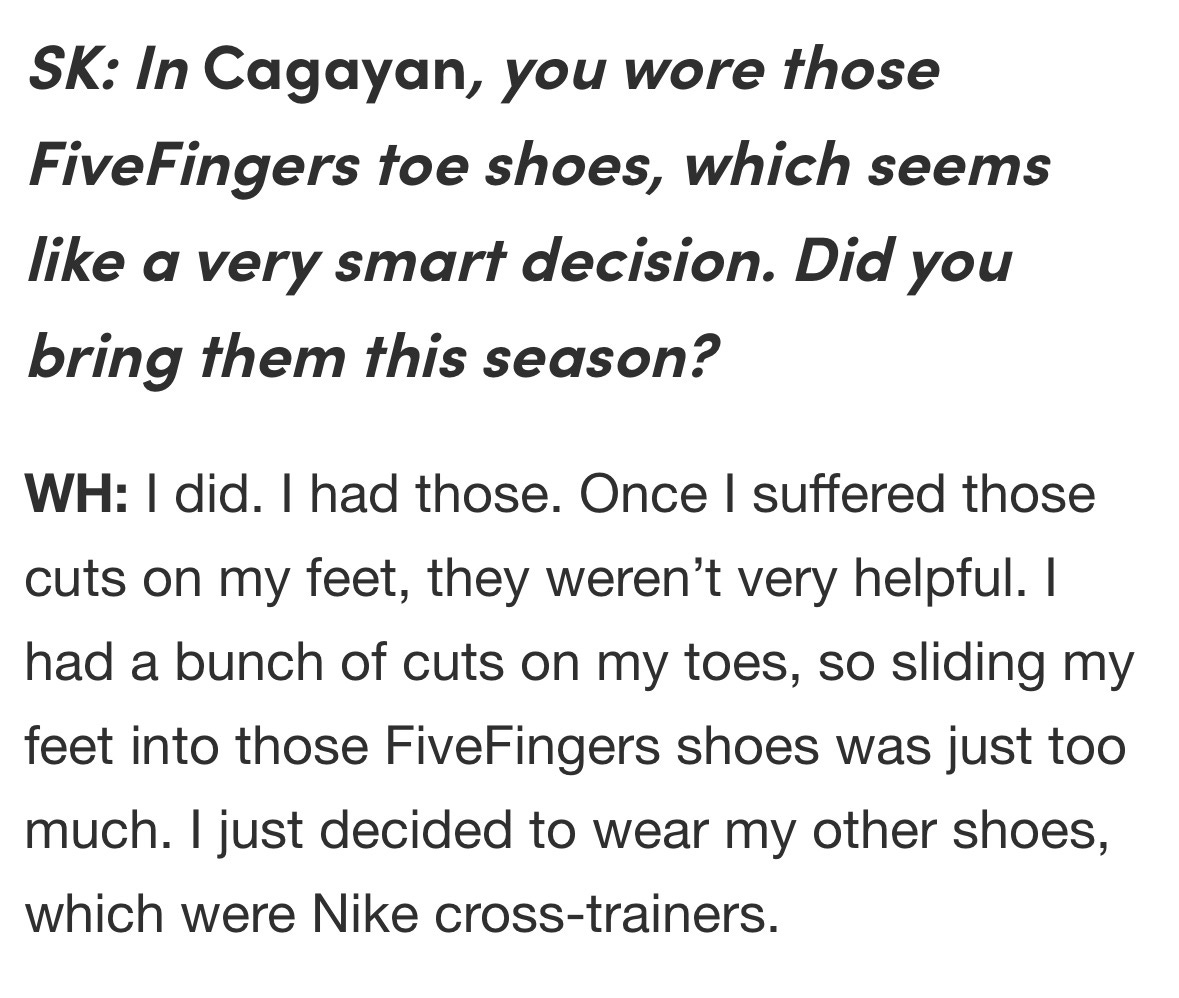The most important cultural moment for FiveFingers in the 2010s was Woo on Survivor Cagayan
