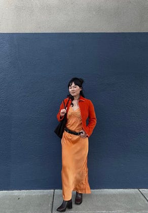 my take on the Colleen Allen look with a secondhand fleece and silk dress 🥕