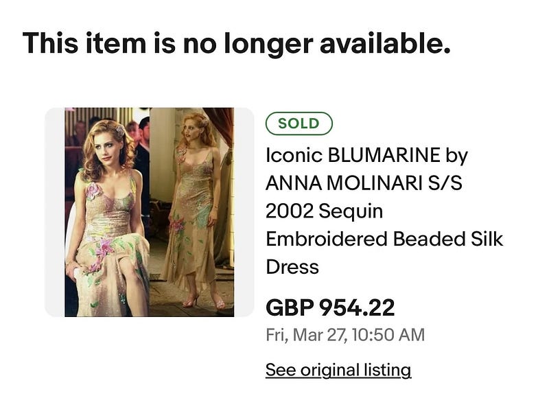 niche ebay drama in today’s letter….someone sold the uptown girls dress for $1k, and then cancelled the order and re-listed it for auction after realizing that they vastly underpriced it