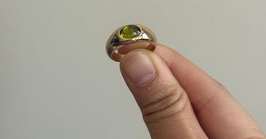 how i style a peridot cabochon in my ring stacks
