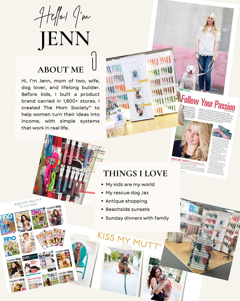 I’m passionate about motherhood, entrepreneurship, my love for dogs, and supporting other women as they build lives and businesses that feel fulfilling and aligned with who they are.