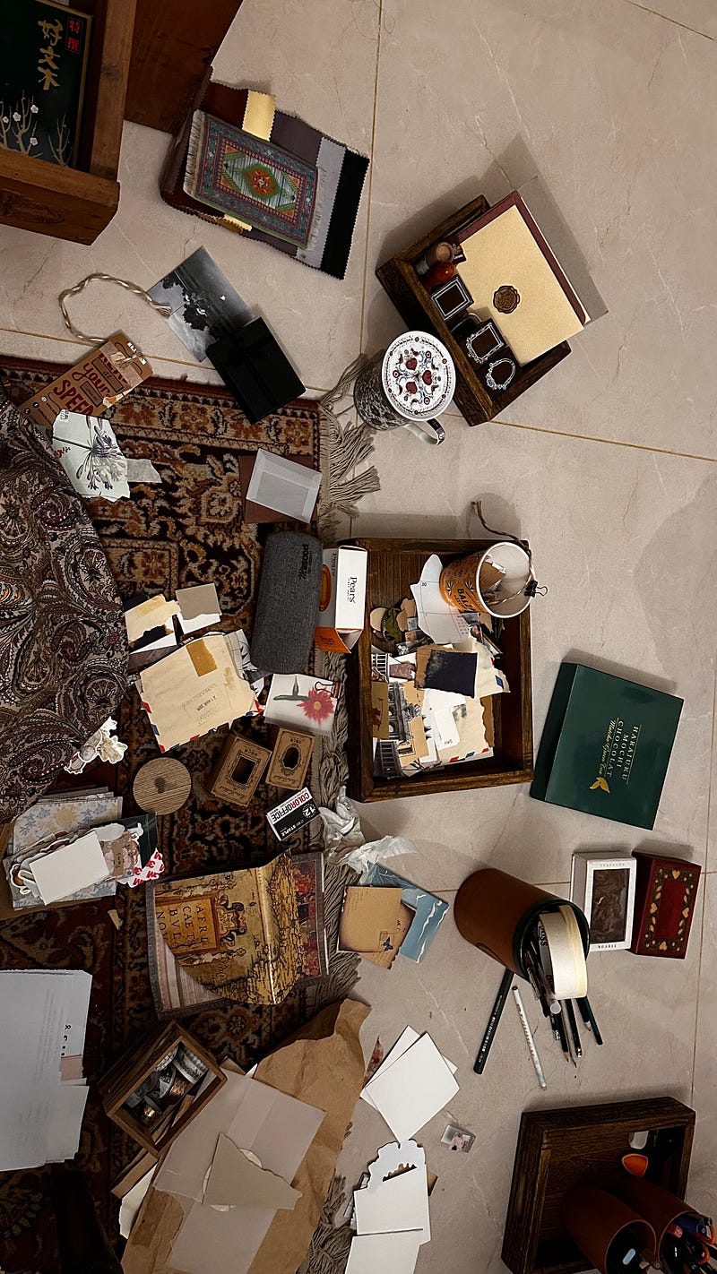 Image 1. Sorting my therapy scrapbooking tools in my Soul Studio