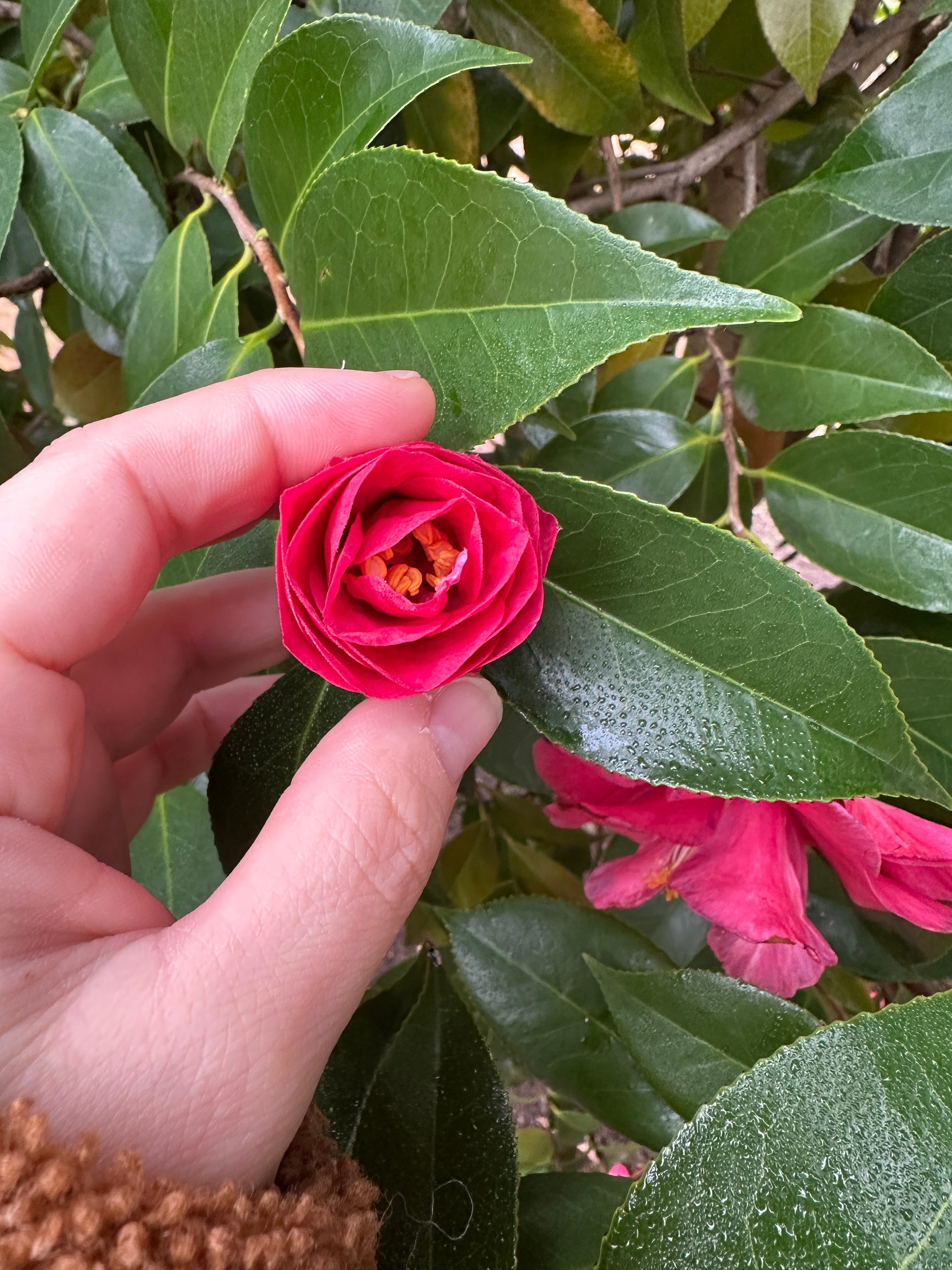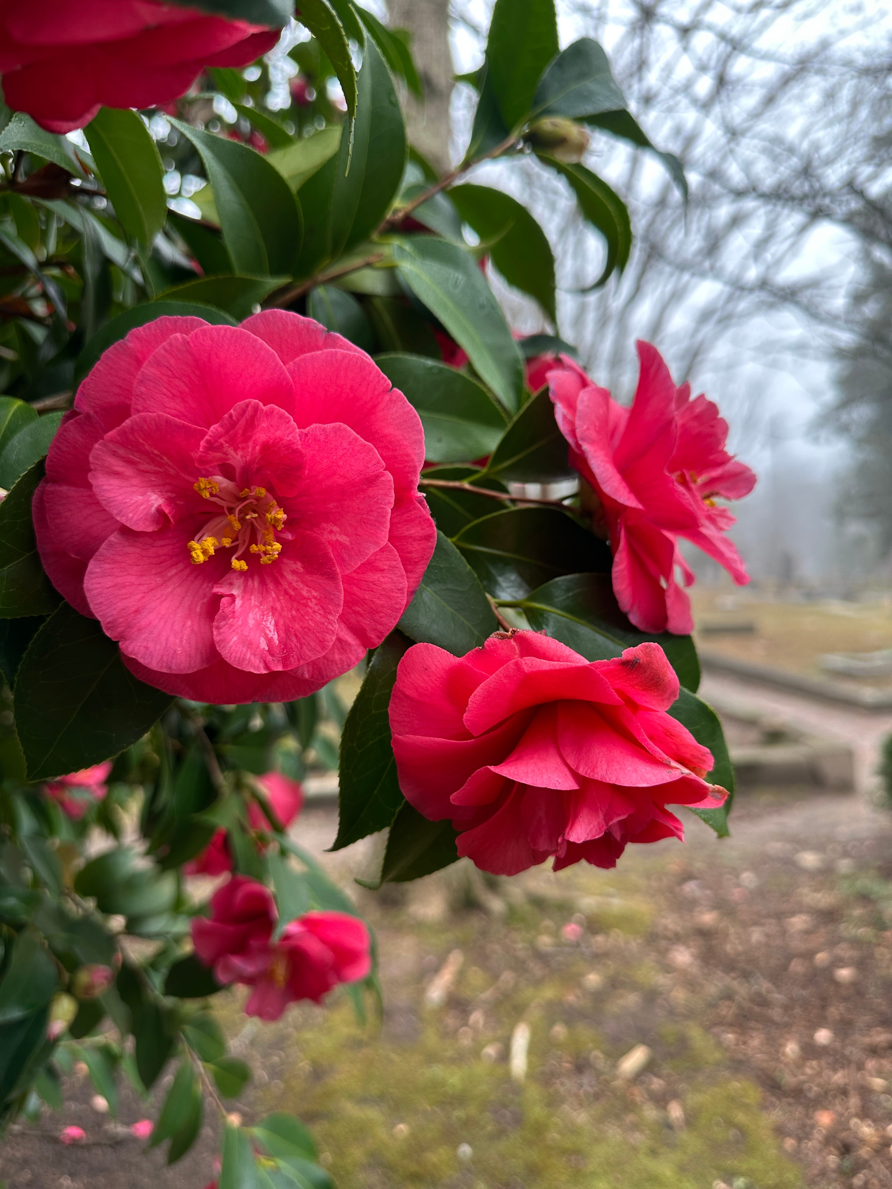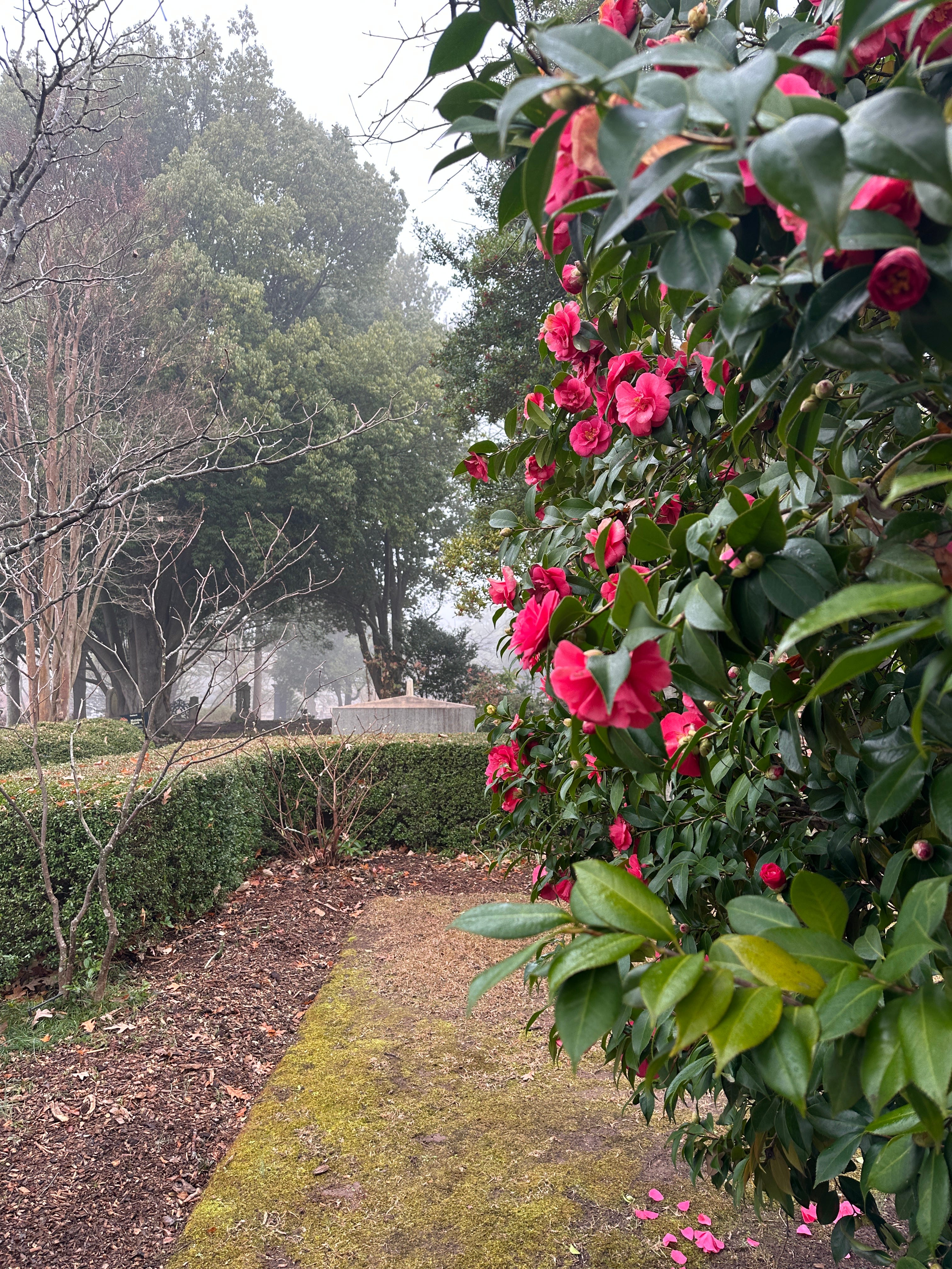 In the South, camellias are often planted in old homesteads, gardens and cemeteries. Which is where I found my bouquet this morning.
