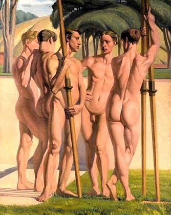 Depicting Five Olympic Rowers, 88 x 70 in.; 224 x 178 cm
