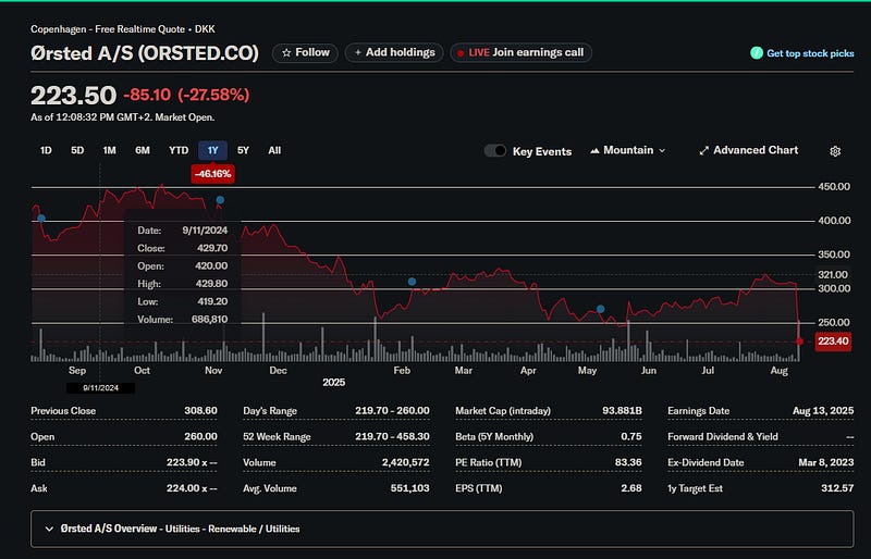 I mentioned we could see negative effects as a result of the NOVO destruction. Ørsted now reportedly releasing numbers they’re in a deep hole.