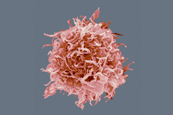 Electron microscope image of a white blood cell. Electrons have shorter wavelengths than particles of light, allowing them to image much smaller details and structures that would be blurry or indistinguishable for regular microscopes.
