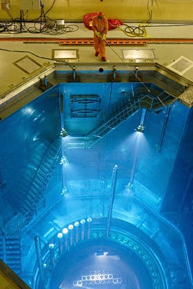 The Angra II Nuclear Power Plant in Angra dos Reis, Brazil. A technician can be seen checking contamination levels from spent fuel in the reactor pool.