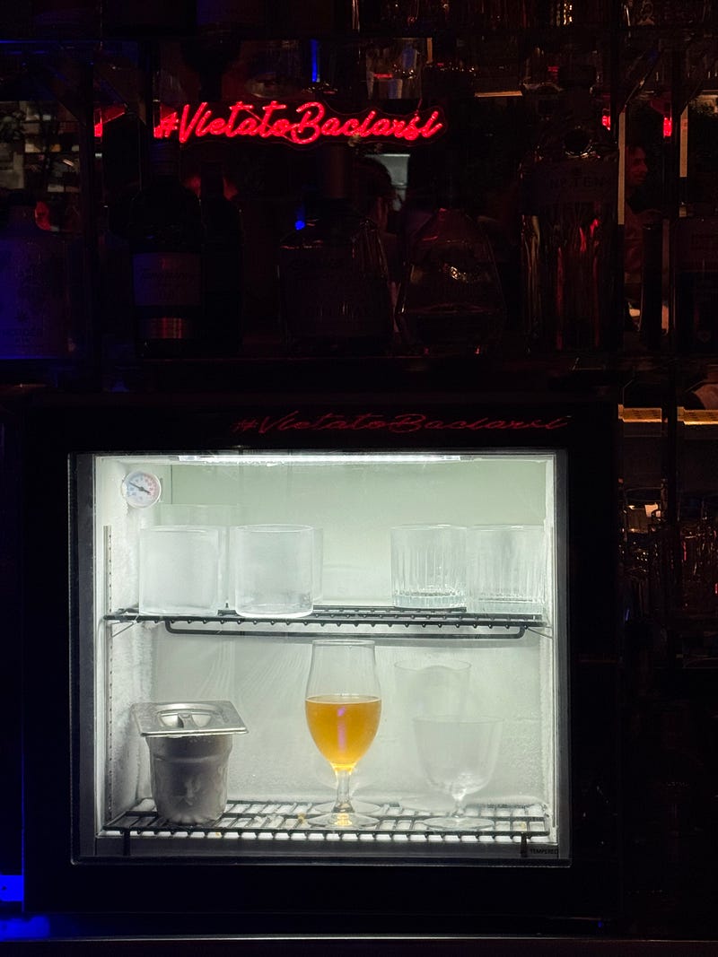 My husband got up to take a quick call and when he got back he found the bartender put his drink in the fridge to keep it cold.