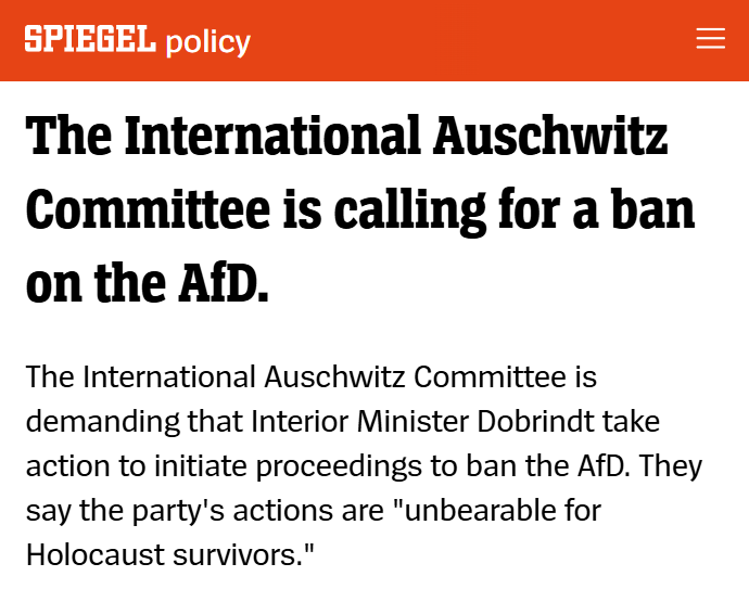 The “International Auschwitz Committee” is calling for a ban of the AfD, because the feelings of Jewish people and more particularly those who head Jewish groups are far more important than Germany’s right and duty to protect her borders and secure the continuation of her posterity.