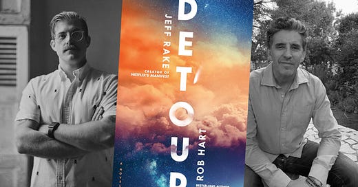 If you loved the hit television show MANIFEST and/or if you (like me) are a fan of Rob Hart’s must-read books, then this one’s for you. The two creatives have teamed up to co-write a new novel called DETOUR, the first in a new series that they discuss below with Book Spy corespondent Jeff Ayers.