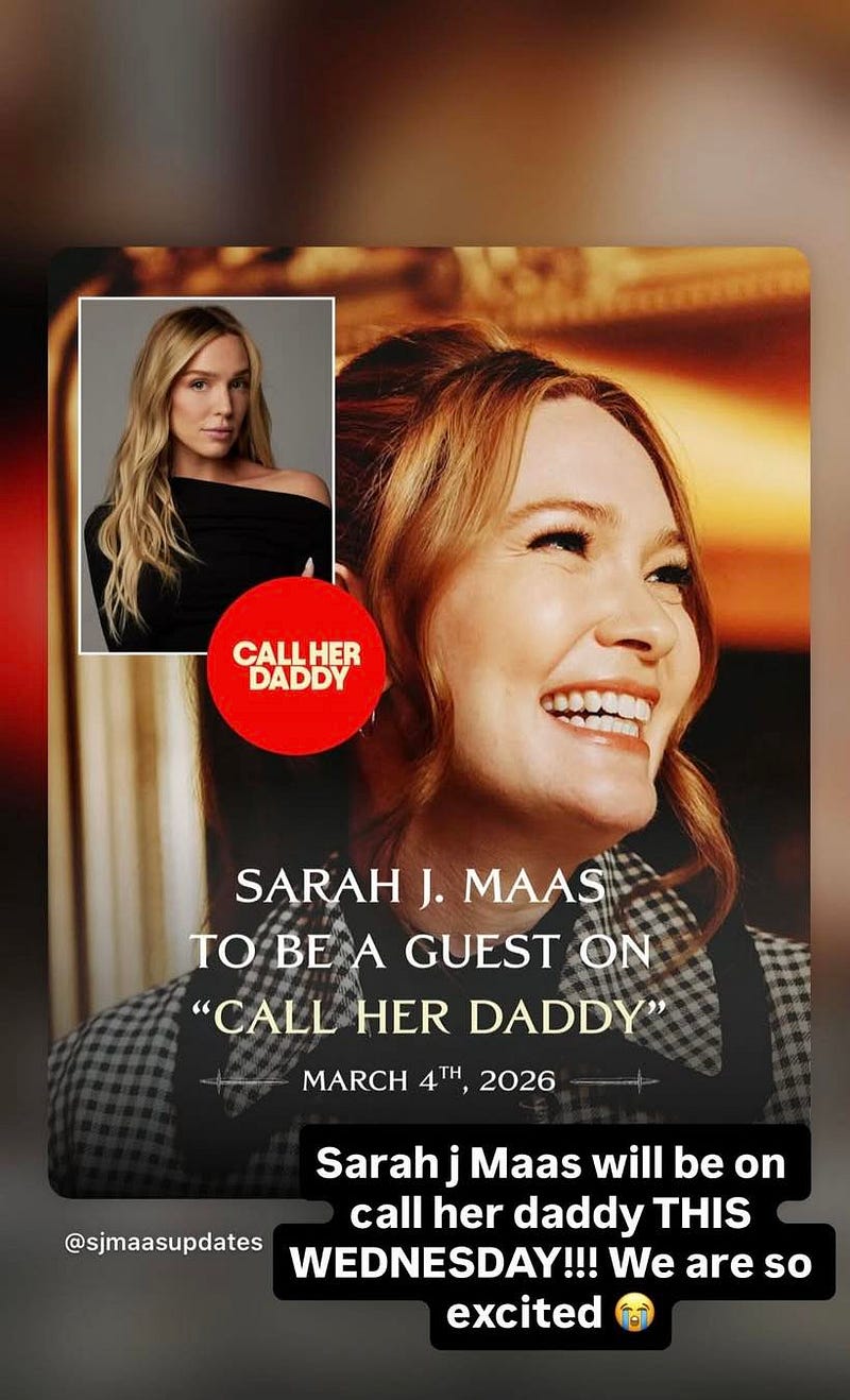 If rumors are correct (and they really sound like they are) Sarah J. Maas will be a guest on the Call Her Daddy podcast on Wednesday of this week.