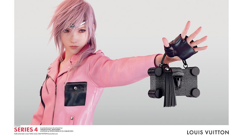 It’s Lightening from Final Fantasy XIII for Louis Vuitton’s 2016 campaign.