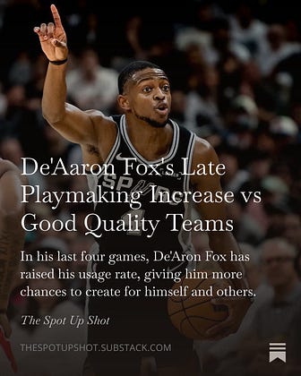 In his last four games, De’Aron Fox has raised his usage rate, giving him more chances to create for himself and others.