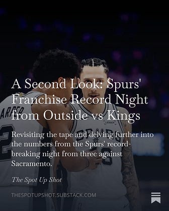 Revisiting the tape and delving further into the numbers from the Spurs’ record-breaking night from three against Sacramento.