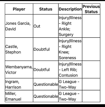 Per Spurs, Wemby is DOUBTFUL to play Wednesday vs Portland with a left rib contusion.