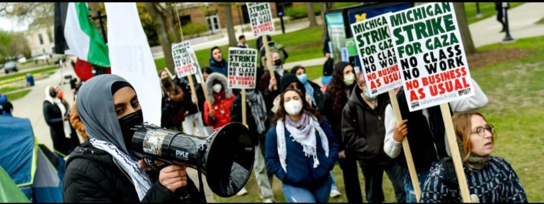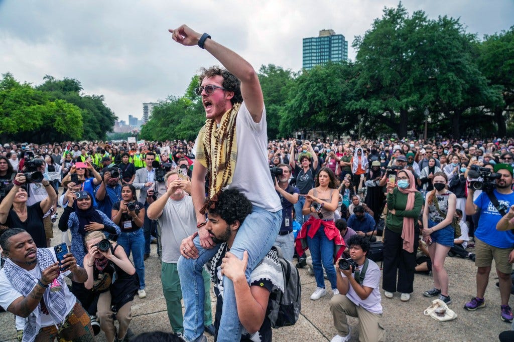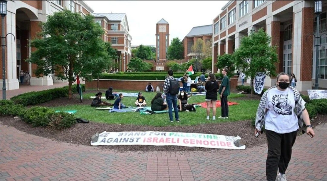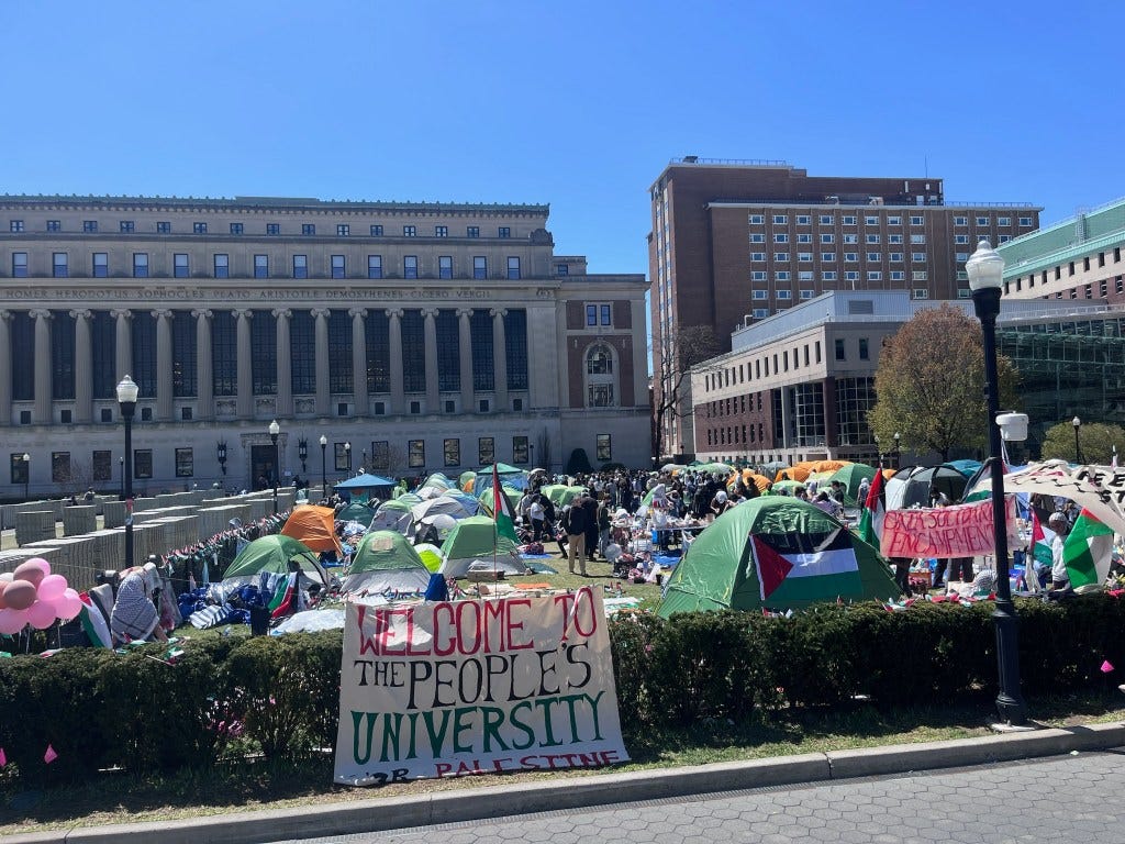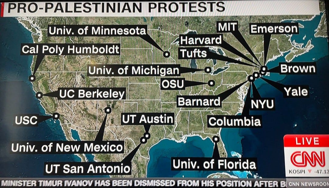 The protests, which began when students took over Columbia University’s Morningside Heights campus lawn last week, have mushroomed nationwide.