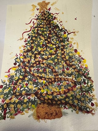 A Christmas Tree for our times - a little frazzled yet its symbolism holds a prayer for love and peace for all.